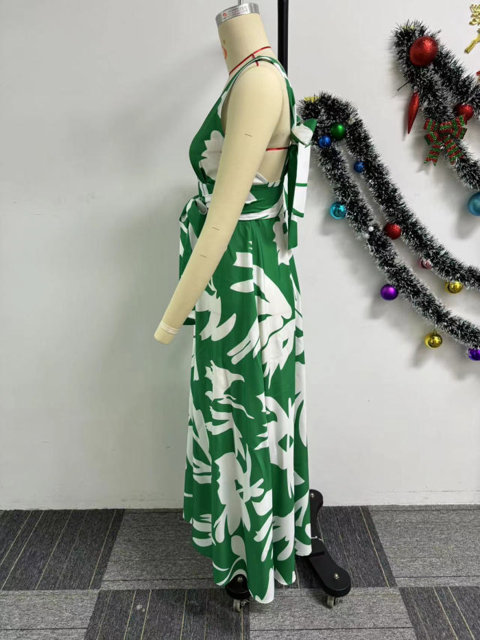 (Real Image)2024 Styles Women Floral Lace-Up Waist Maxi Dress with Maxi Dress for SummerSKU: #XF27496-1