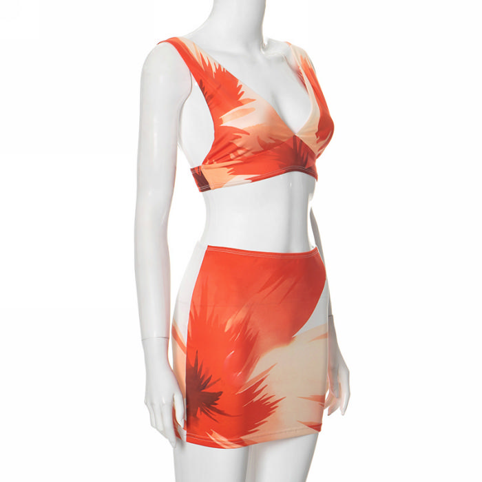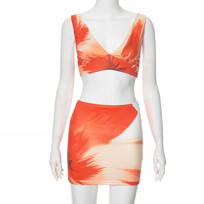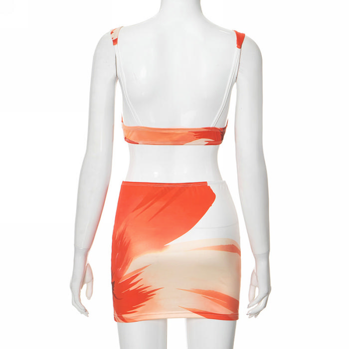 (Real Image)2024 Styles Women Floral Print Halter Top and Skirt Two-Piece SetSKU: #CF92077-1