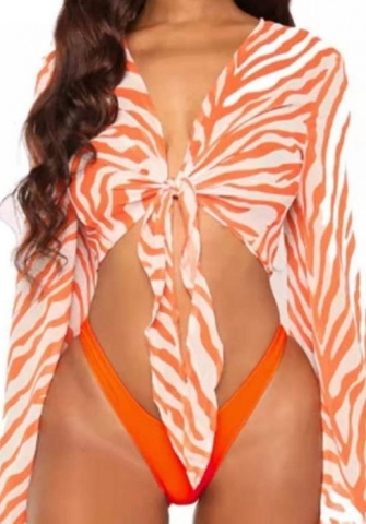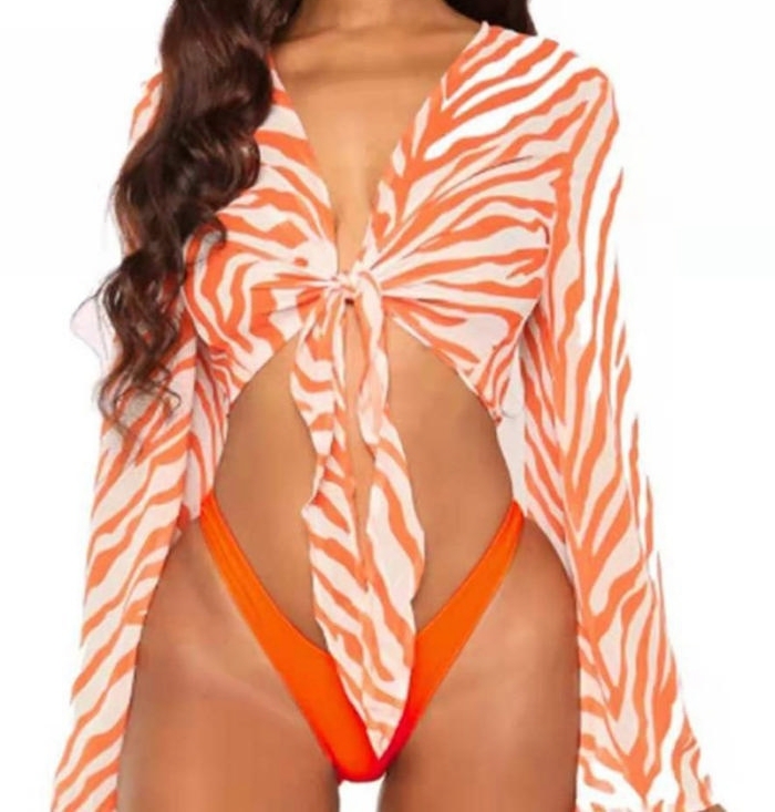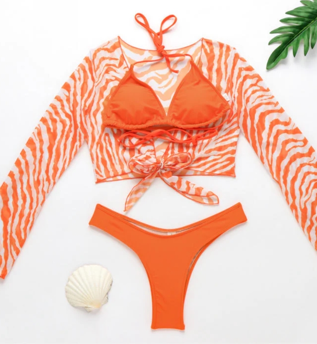 (Real Image)2024 Styles Women Floral Print Separate Swimsuit with Chiffon Cover-Up and High-Waisted Tied-Side Triangle Bikini SetSKU: #OU2975-1