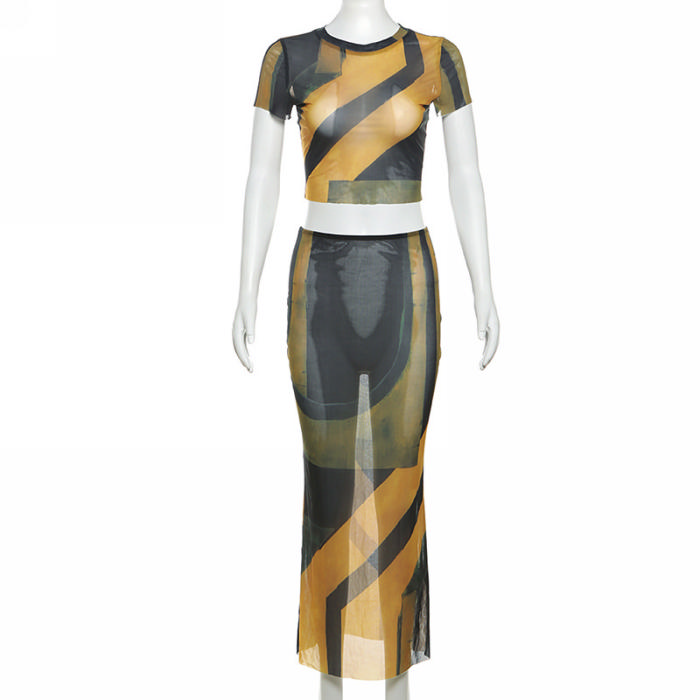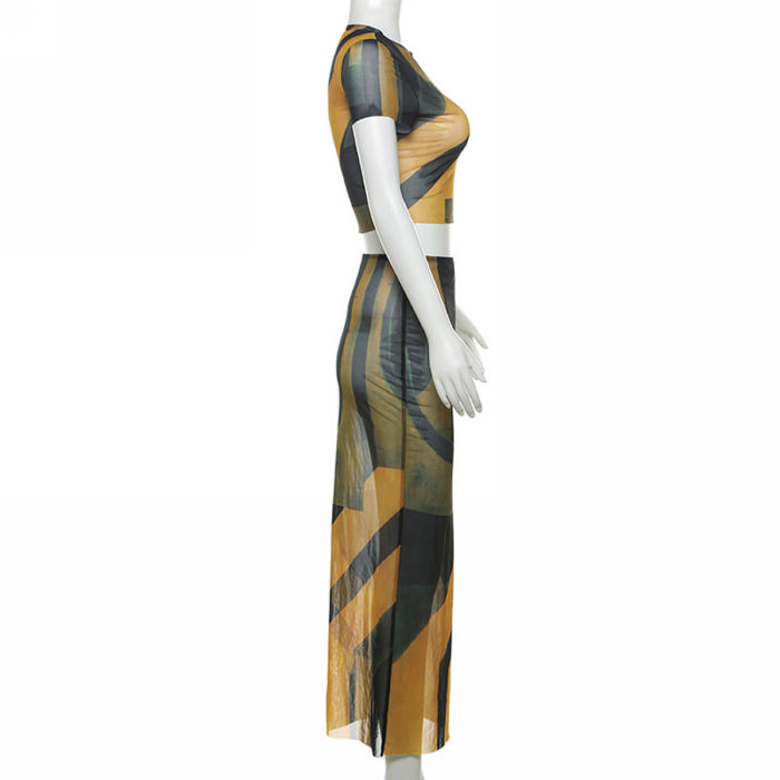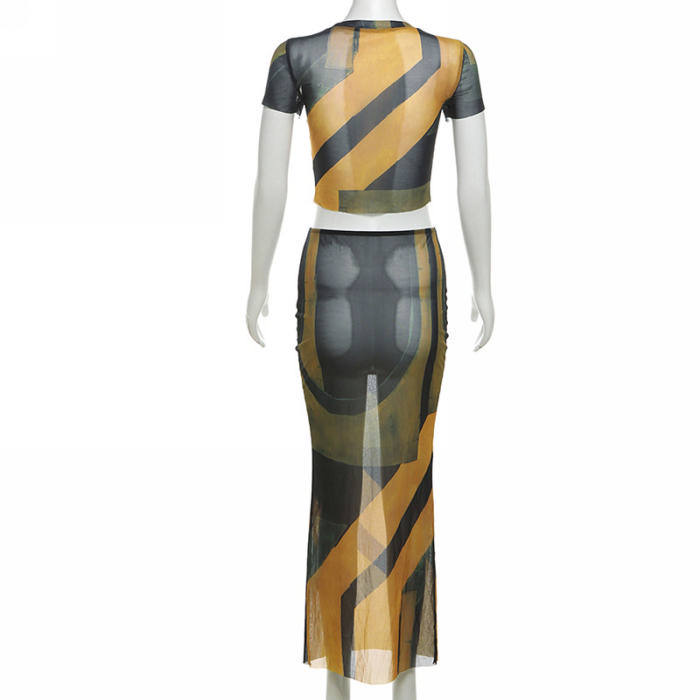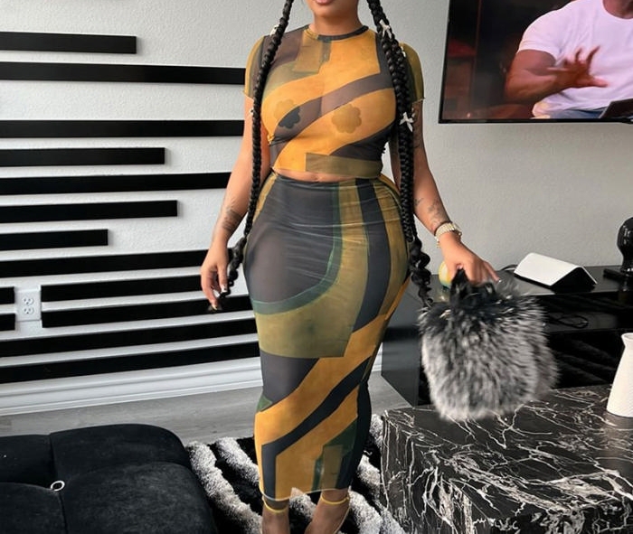 (Real Image)2024 Styles Women Floral Print Short Sleeve Round Neck Top with a Form-Fitting Skirt SetSKU: #CF83382-1
