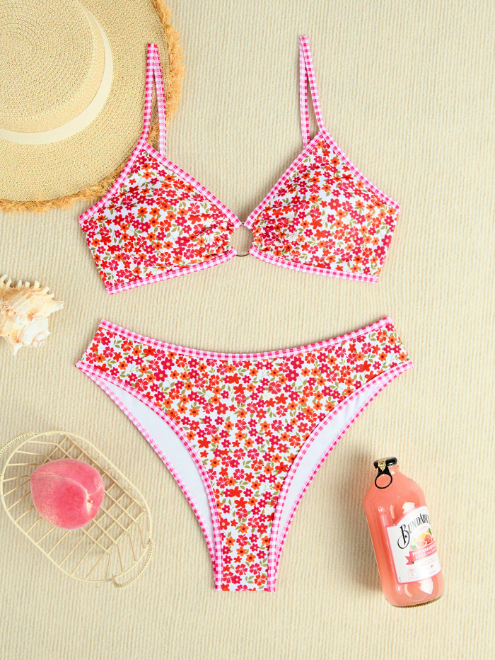 (Real Image)2024 Styles Women Floral Print Triangle Cup Sexy Bikini SwimsuitSKU: #CF56132-1