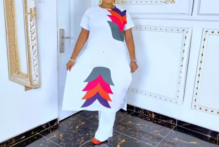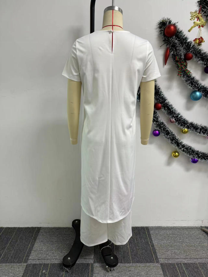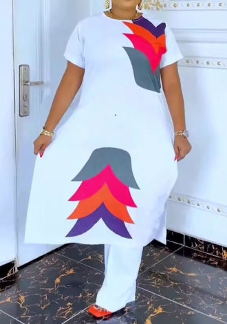 (Real Image)2024 Styles Women Floral Split-Hem Pullover Round Neck Long Top and Pants Two-Piece SetSKU: #XF27503-1