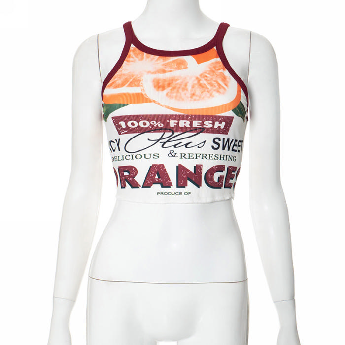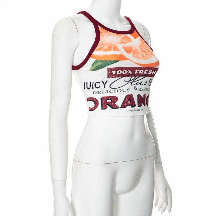 (Real Image)2024 Styles Women Fruit Print Round Neck Sleeveless VestSKU: #CF76175-1