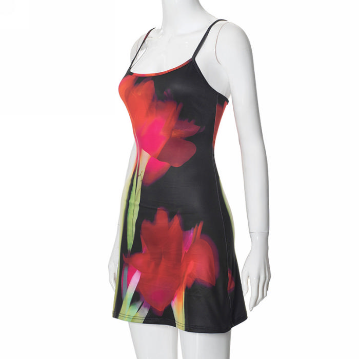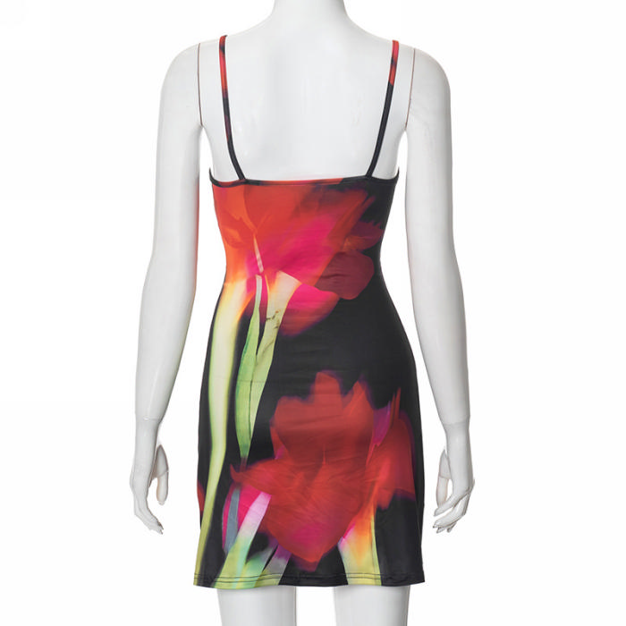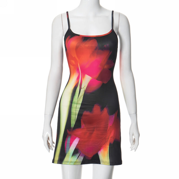 (Real Image)2024 Styles Women Halter Print Pleated Pullover Bodycon Mini DressSKU: #CF92162-1