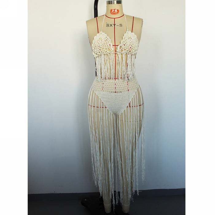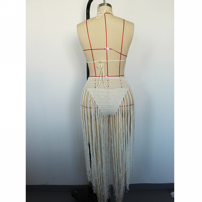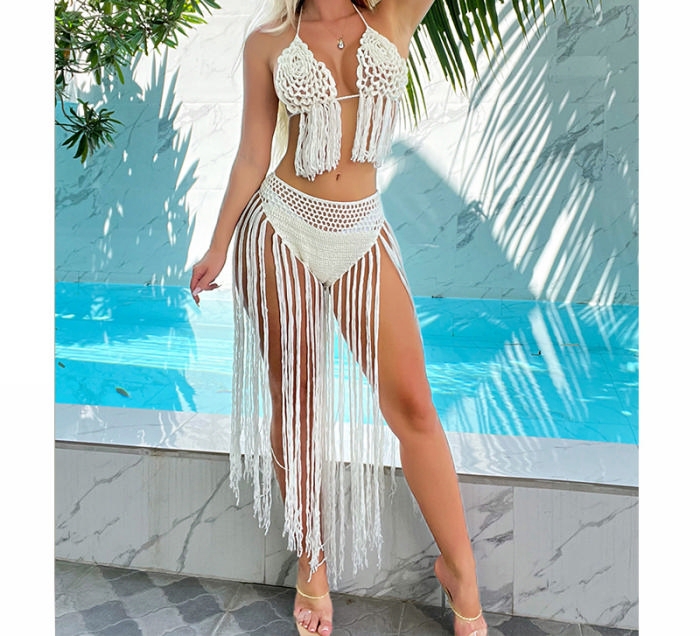 (Real Image)2024 Styles Women Hand-Crochet 3D Floral Fringe Sexy Halter Beach Bikini SetSKU: #OU2954-1