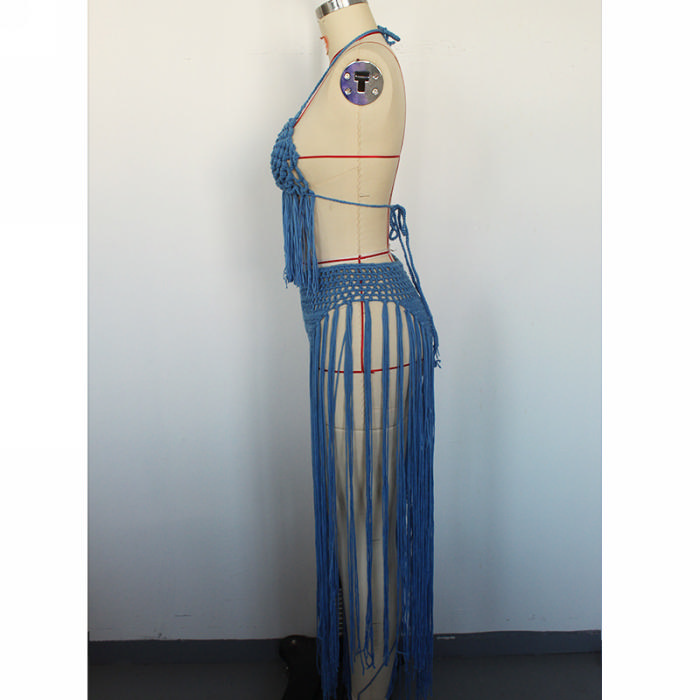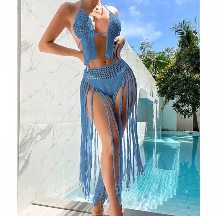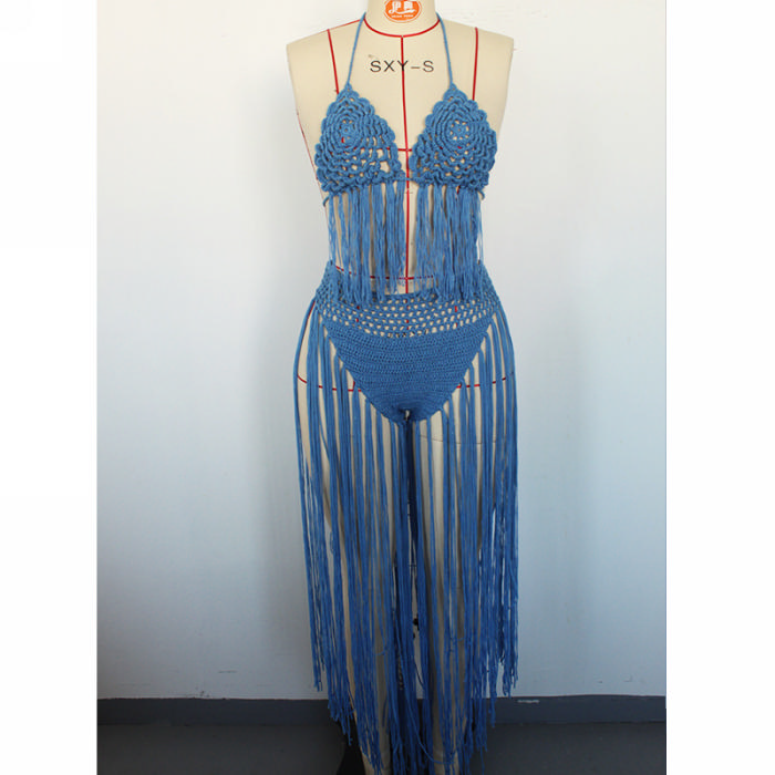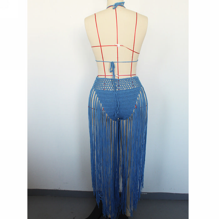 (Real Image)2024 Styles Women Hand-Crochet 3D Floral Fringe Sexy Halter Beach Bikini SetSKU: #OU2954-5
