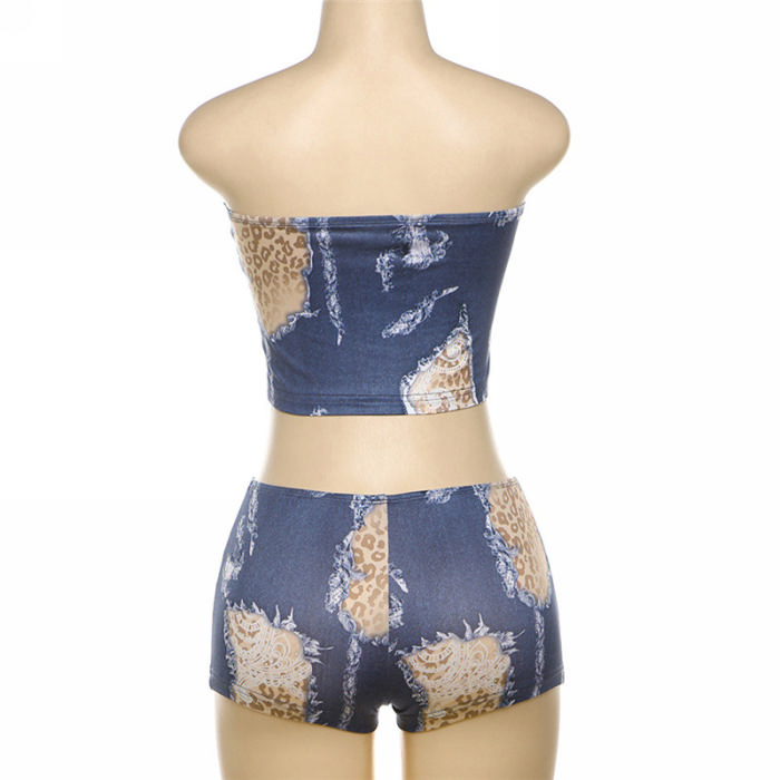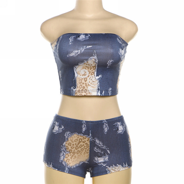 (Real Image)2024 Styles Women Hand-Painted Print Sleeveless Halter Top with Stretchy Shorts for a Casual SetSKU: #CF83406-1