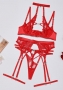 (Real Image)2024 Styles Women Heart-Shaped Rhinestone Buckle Sexy Openwork Embroidered Erotic Halter Lingerie SetSKU: #GF02033-2