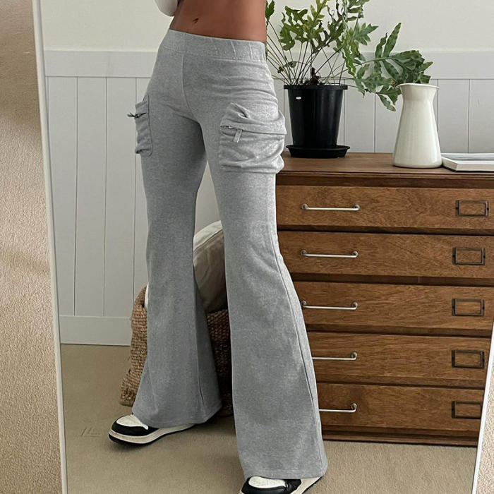 (Real Image)2024 Styles Women High-Waisted Zip Pocket Bootcut PantsSKU: #XF92941-1
