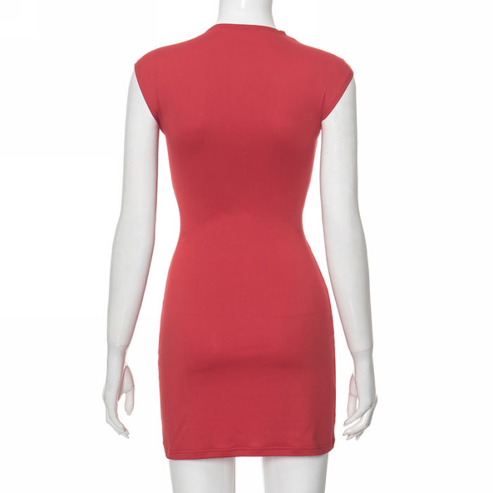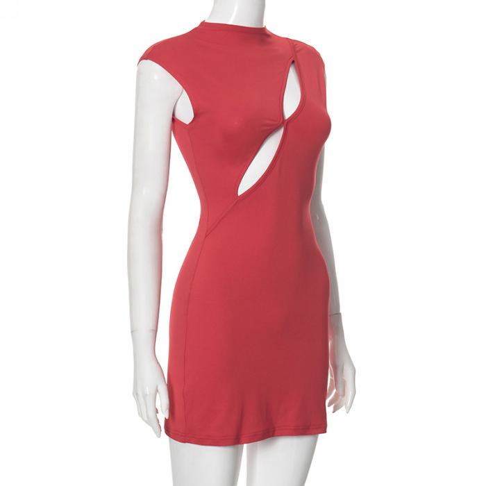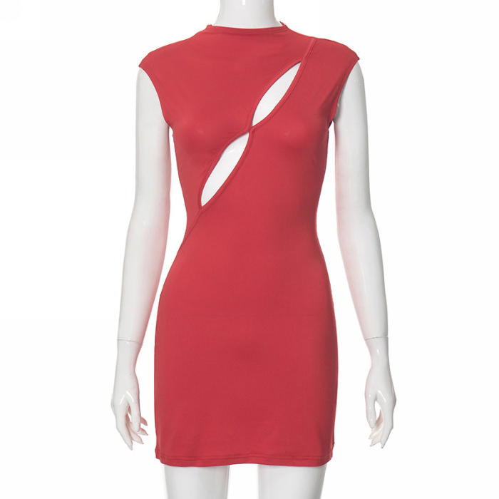 (Real Image)2024 Styles Women Hole-Punched Fashion Sleeveless Bodycon Mini DressSKU: #CF92078-1