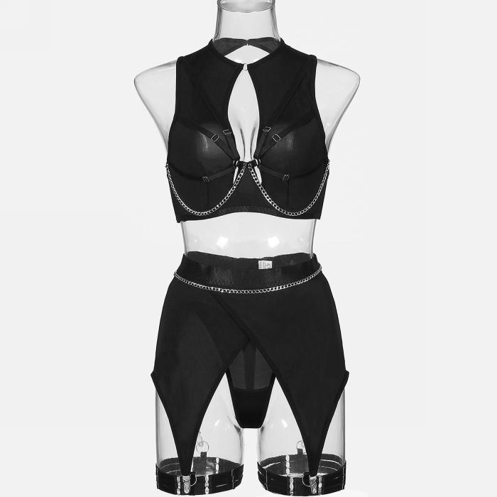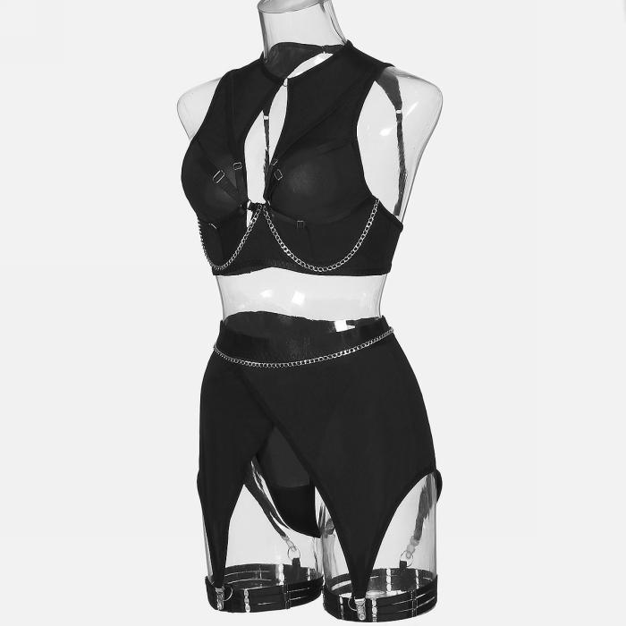 (Real Image)2024 Styles Women Influencer Stylish Chain Steel Boned Push-Up Erotic Lingerie Four-Piece SetSKU: #GF02020-1