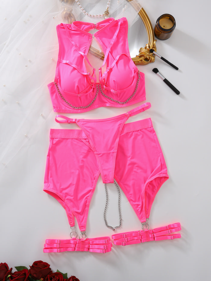 (Real Image)2024 Styles Women Influencer Stylish Chain Steel Boned Push-Up Erotic Lingerie Four-Piece SetSKU: #GF02020-3