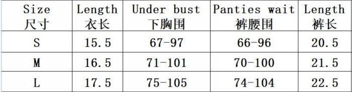 | Size | Bust | Waist | Hips |