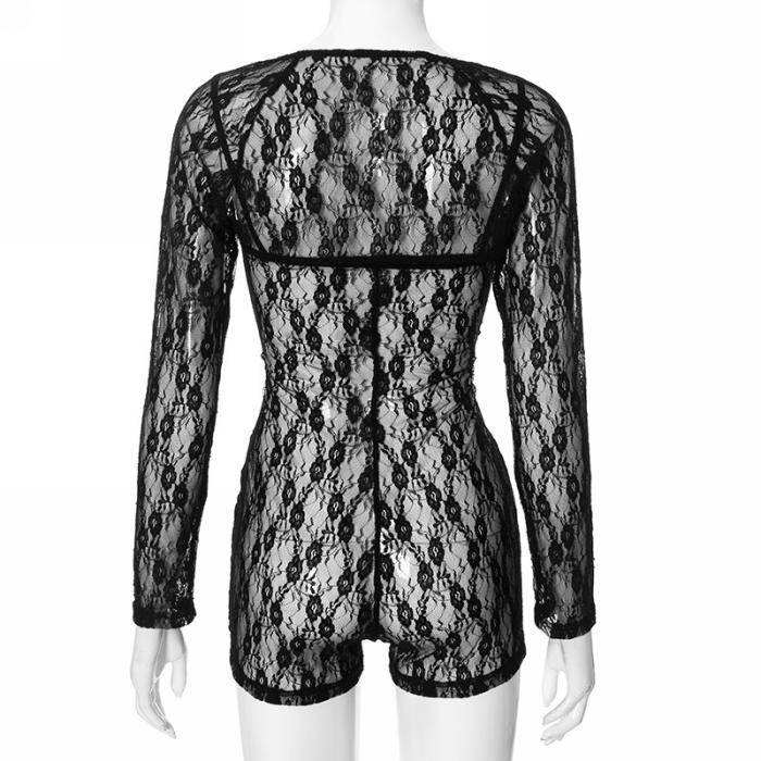 (Real Image)2024 Styles Women Lace Openwork Long Sleeve Strapless JumpsuitSKU: #CF42084-1