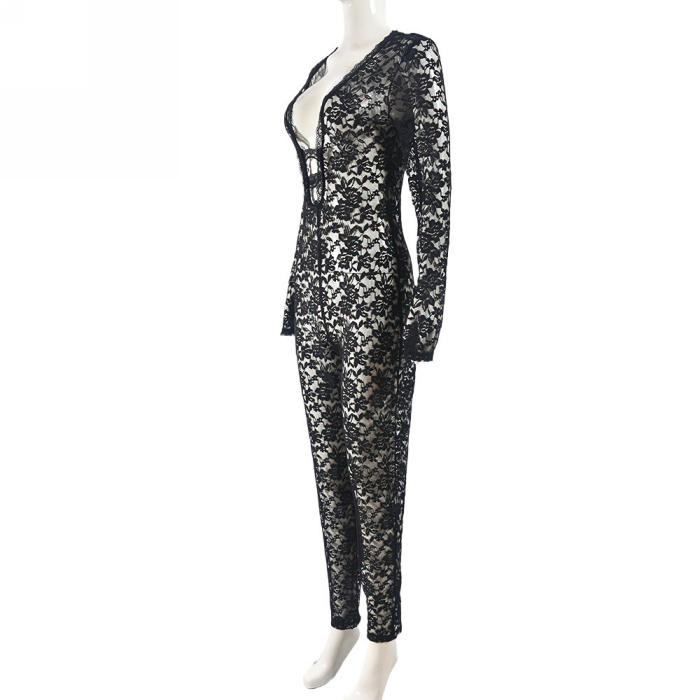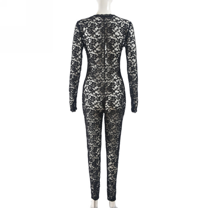 (Real Image)2024 Styles Women Lace See-Through Zipper Sexy Clubwear Long Sleeve JumpsuitSKU: #CF59813-1