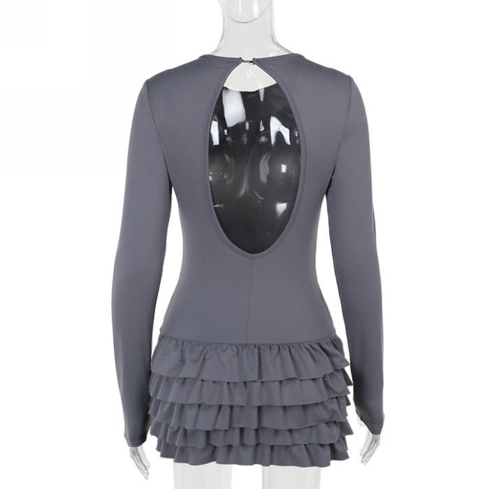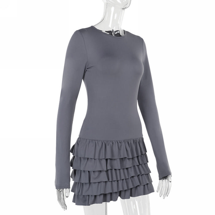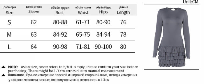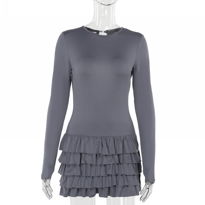 (Real Image)2024 Styles Women Layered Ruffle Hem Long Sleeve DressSKU: #GF04005-1