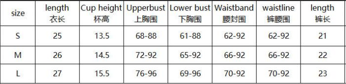 | Size | Bust | Waist | Hips |