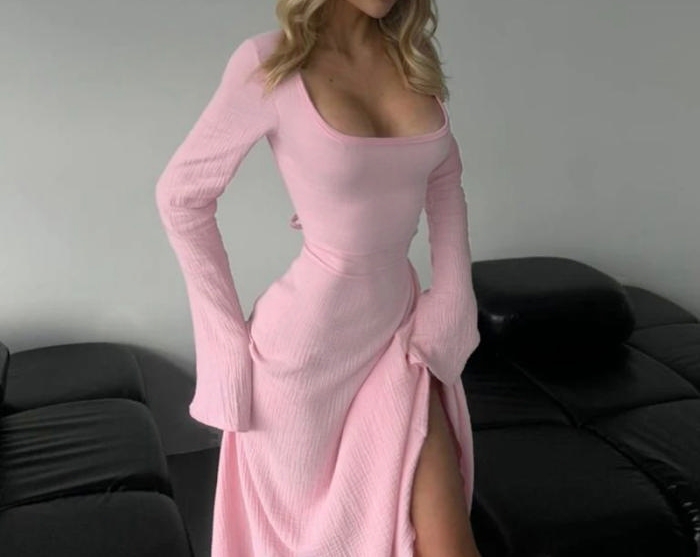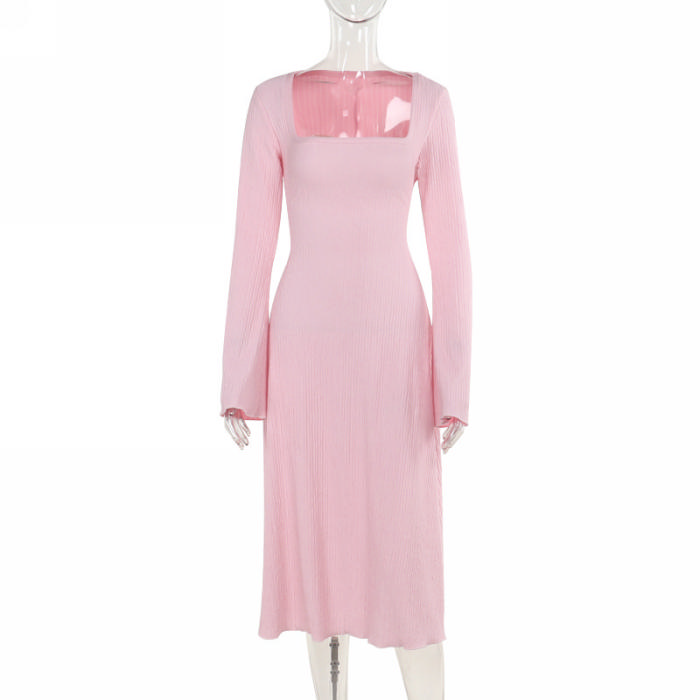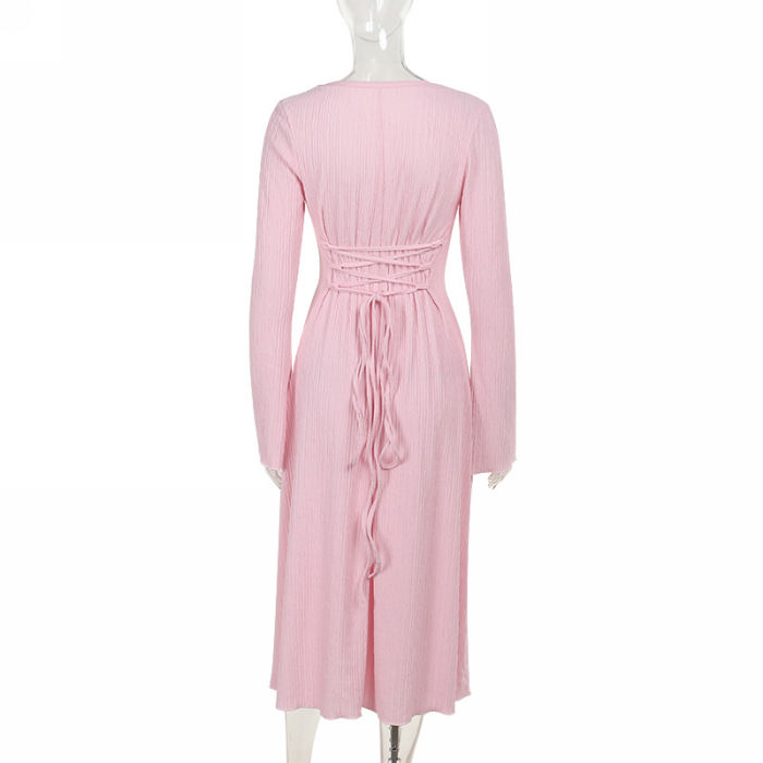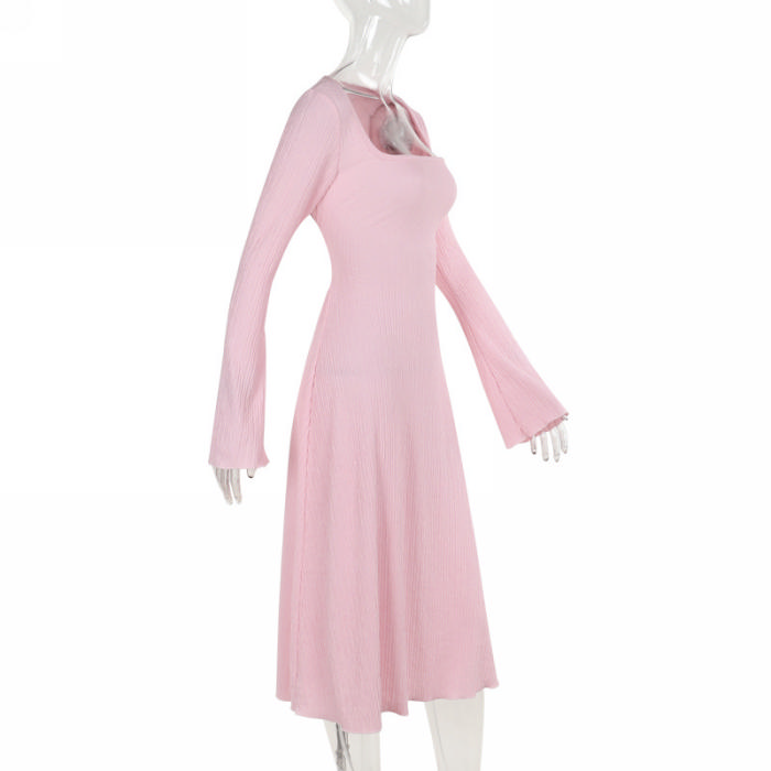(Real Image)2024 Styles Women Long-Sleeve Square Neck Tied A-Line Maxi DressSKU: #XF92964-1