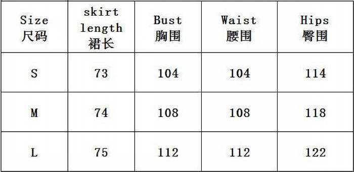 | Size | Bust | Waist | Hips |