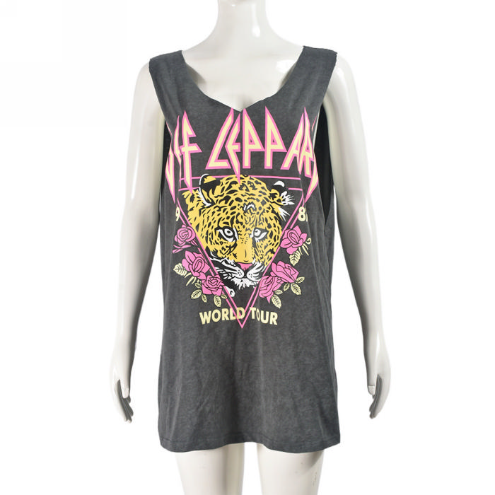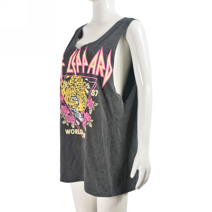 (Real Image)2024 Styles Women Loose Fit Sleeveless Printed Washed T-ShirtSKU: #CF59935-1