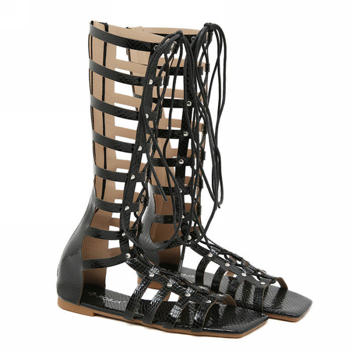(Real Image)2024 Styles Women Luxurious High-Top Strappy Stud-Embellished Gladiator Ankle-Strap SandalsSKU: #CF46188-1
