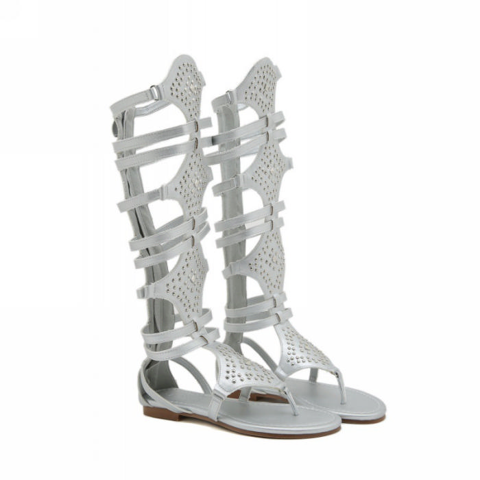 (Real Image)2024 Styles Women Luxury Handcrafted Stud-Embellished High-Top Roman Gladiator BootsSKU: #CF46172-1