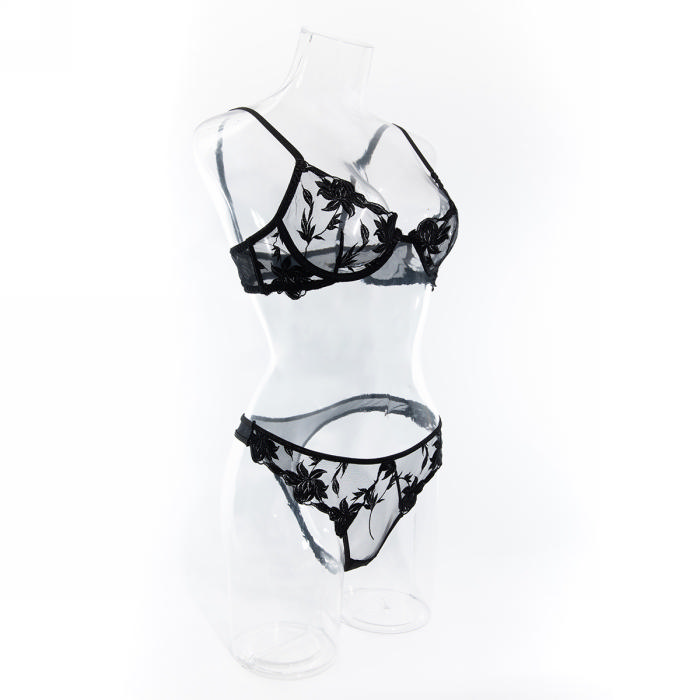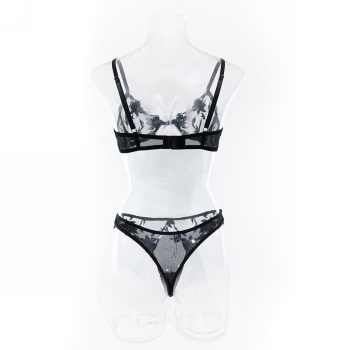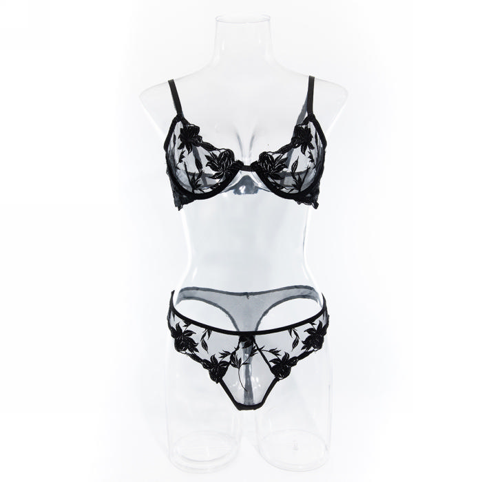 (Real Image)2024 Styles Women Mesh Floral Embroidered Lingerie Set with Sexy BraSKU: #GF03010-1
