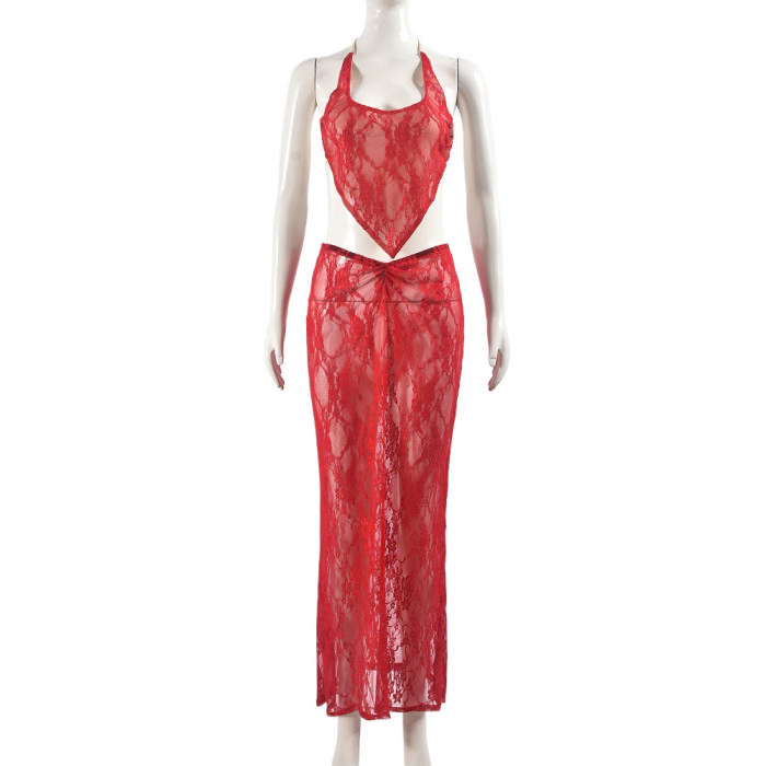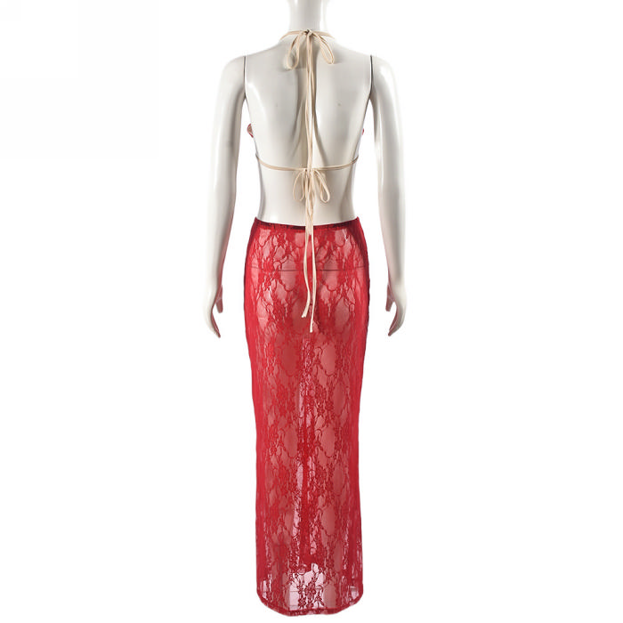 (Real Image)2024 Styles Women Mesh Lace-Up Lining Bustier Top and Long Skirt SetSKU: #CF59873-1