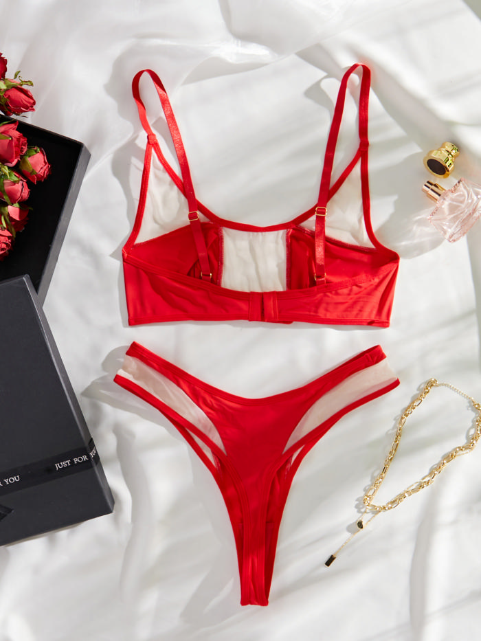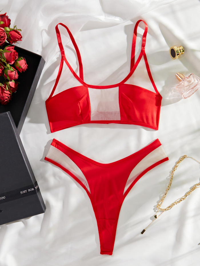 (Real Image)2024 Styles Women Mesh Padded with Comfortable Western-Style Sexy Bra without Underwire Color-Blocking Erotic SetSKU: #GF02018-1