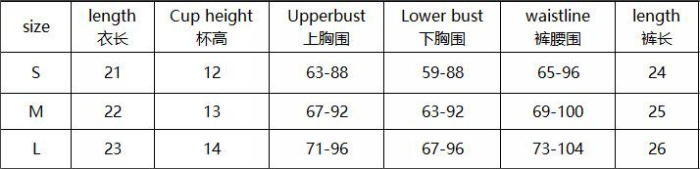 | Size | Bust | Waist | Hips |