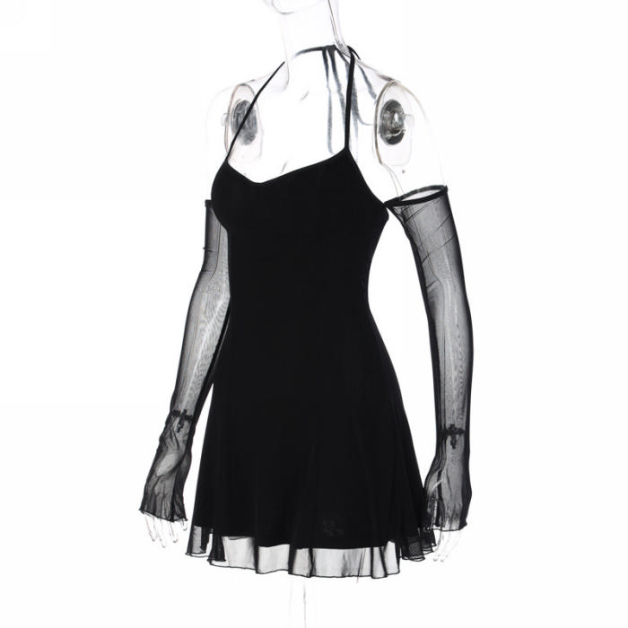 (Real Image)2024 Styles Women Mesh Sleeve Sheer Back DressSKU: #CF88271-1