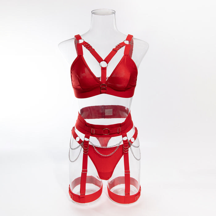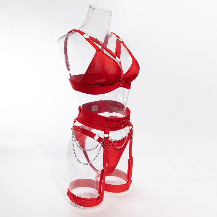 (Real Image)2024 Styles Women Metal Chain Straps with Steel-Boned Gathered Sexy Lingerie Uniform Temptation SetSKU: #GF03006-2