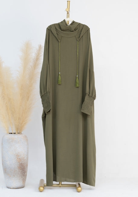(Real Image)2024 Styles Women Muslim Tassel Hoodie Solid Color Long Sleeve Maxi DressSKU: #CF99021-1