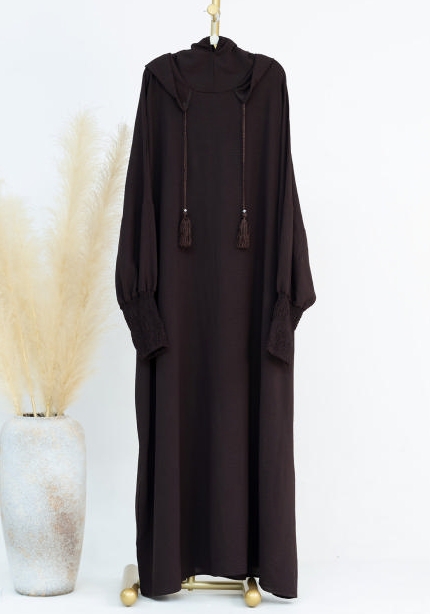 (Real Image)2024 Styles Women Muslim Tassel Hoodie Solid Color Long Sleeve Maxi DressSKU: #CF99021-10