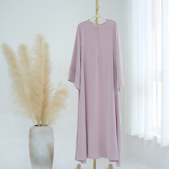 (Real Image)2024 Styles Women Muslim Tassel Long Sleeve Bell Sleeve Solid Color Maxi DressSKU: #CF99014-1