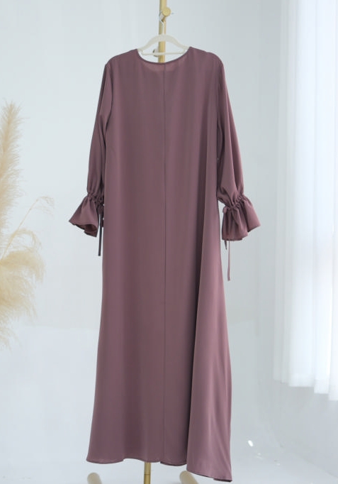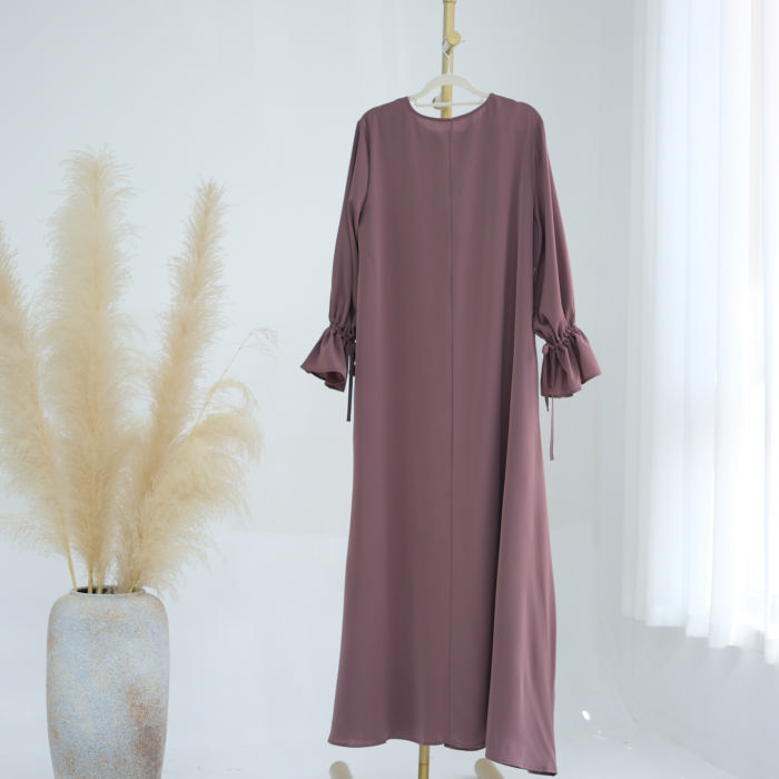 (Real Image)2024 Styles Women Muslim Tassel Long Sleeve Bell Sleeve Solid Color Maxi DressSKU: #CF99014-3