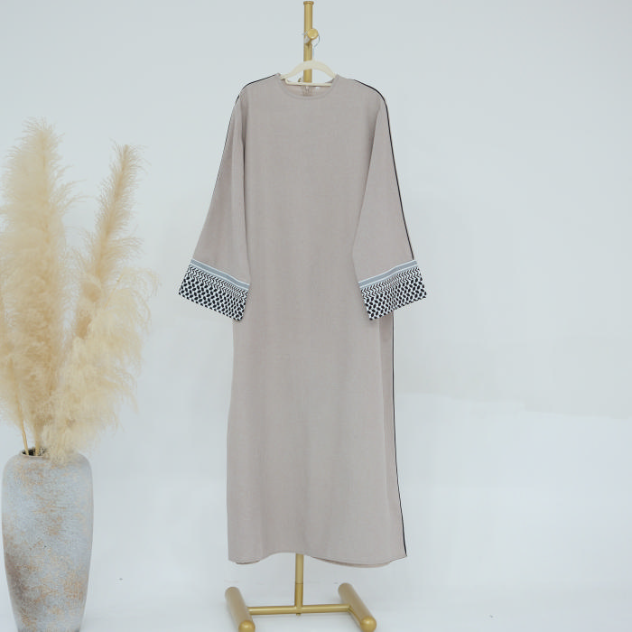 (Real Image)2024 Styles Women Muslim Tassel Long Sleeve Patchwork Elegant DressSKU: #CF99025-1