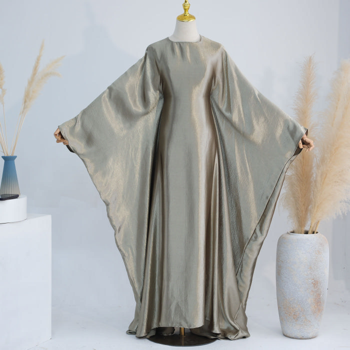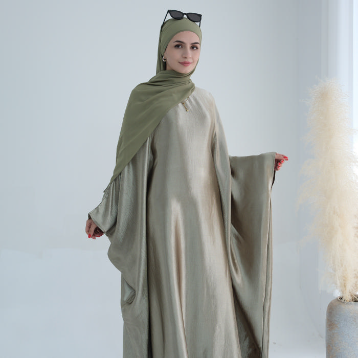 (Real Image)2024 Styles Women Muslim Tassel Long Sleeve Shiny Maxi Dress with HeadscarfSKU: #CF99008-2