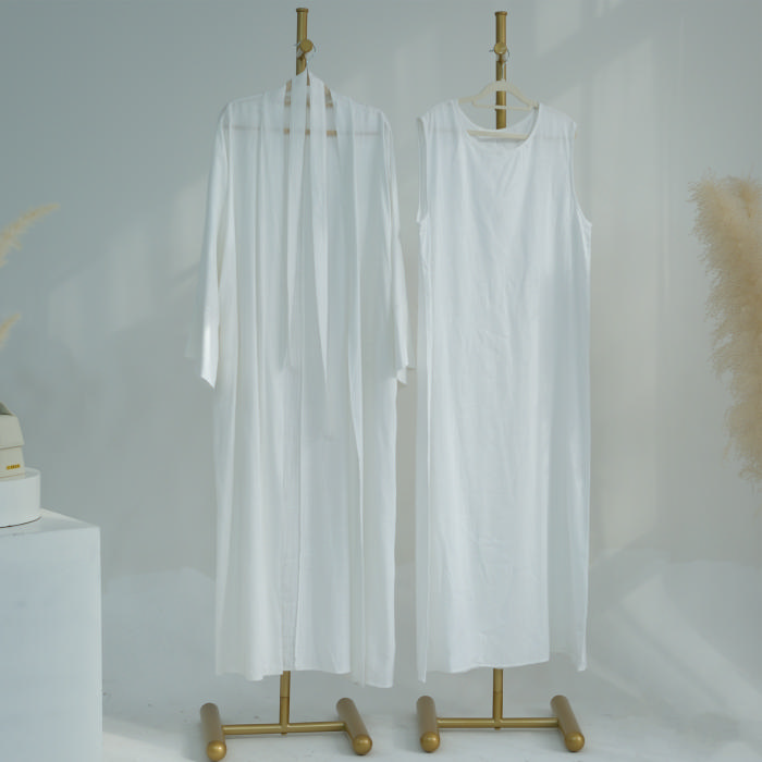 (Real Image)2024 Styles Women Muslim Tassel Long Sleeve Solid Color Cotton Linen Open Front Long RobeSKU: #CF99018-5