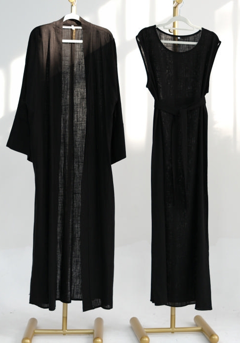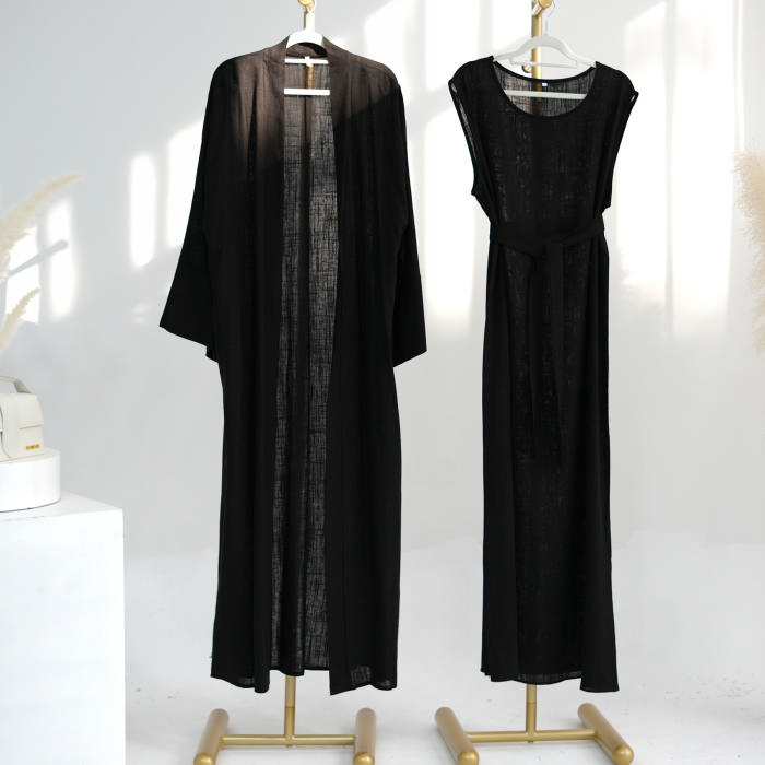 (Real Image)2024 Styles Women Muslim Tassel Long Sleeve Solid Color Cotton Linen Open Front Long RobeSKU: #CF99018-3