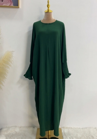(Real Image)2024 Styles Women Muslim Tassel Long Sleeve Solid Color TikTok Batwing Style DressSKU: #CF99027-11