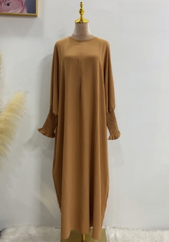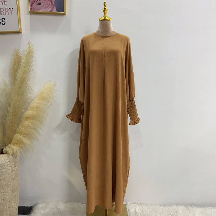 (Real Image)2024 Styles Women Muslim Tassel Long Sleeve Solid Color TikTok Batwing Style DressSKU: #CF99027-7