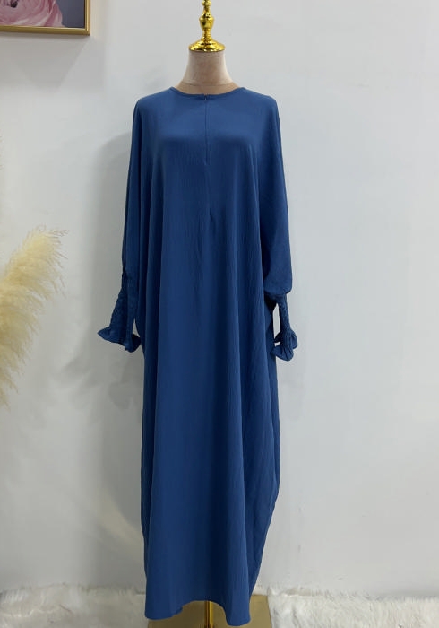 (Real Image)2024 Styles Women Muslim Tassel Long Sleeve Solid Color TikTok Batwing Style DressSKU: #CF99027-5