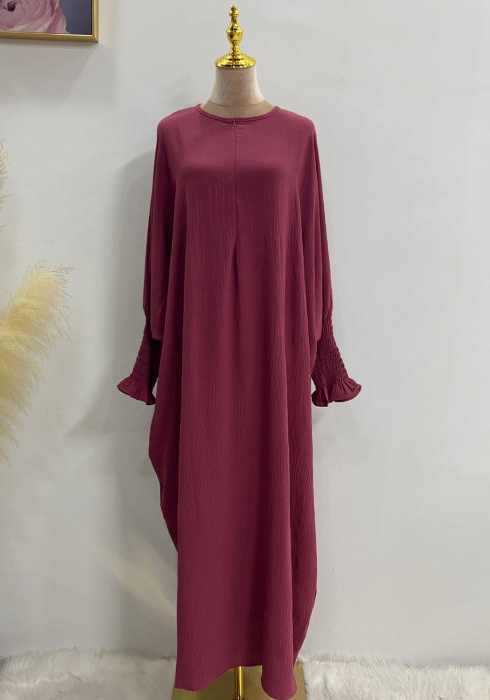 (Real Image)2024 Styles Women Muslim Tassel Long Sleeve Solid Color TikTok Batwing Style DressSKU: #CF99027-4