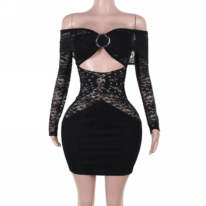 (Real Image)2024 Styles Women Off-Shoulder Cut-Out Dress with Circular Rings for a Sultry LookSKU: #GF04020-1