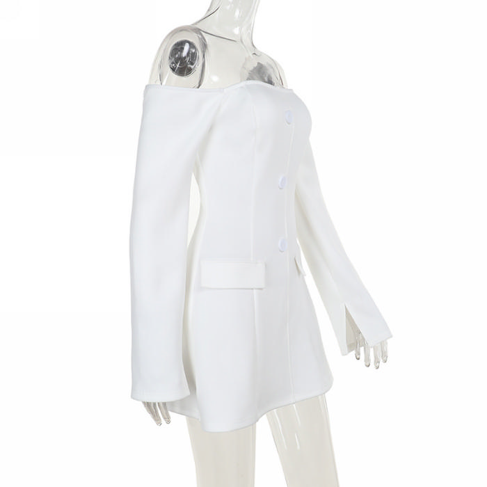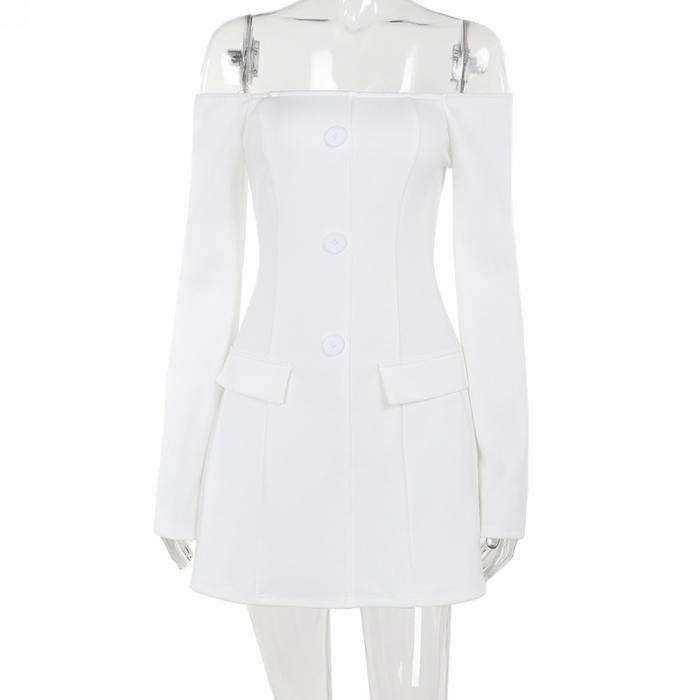 (Real Image)2024 Styles Women Off-Shoulder Pocket-Flapped Long-Sleeve Bodycon DressSKU: #XF92985-1