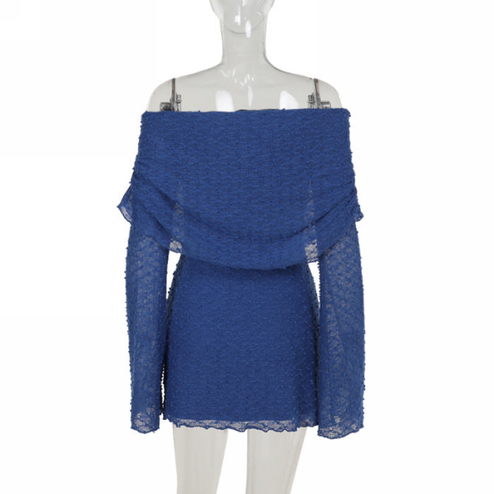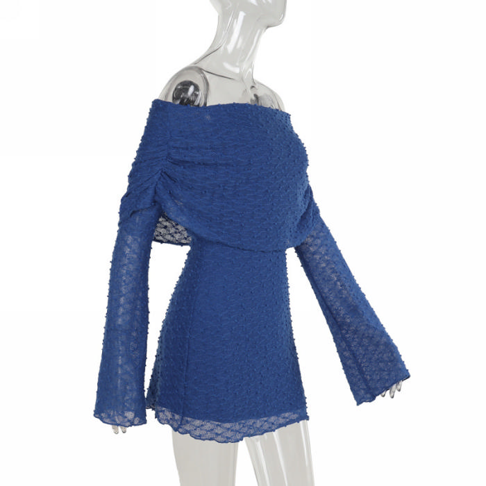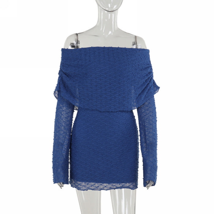 (Real Image)2024 Styles Women Off-Shoulder Textured Fabric Long-Sleeve DressSKU: #XF92908-1