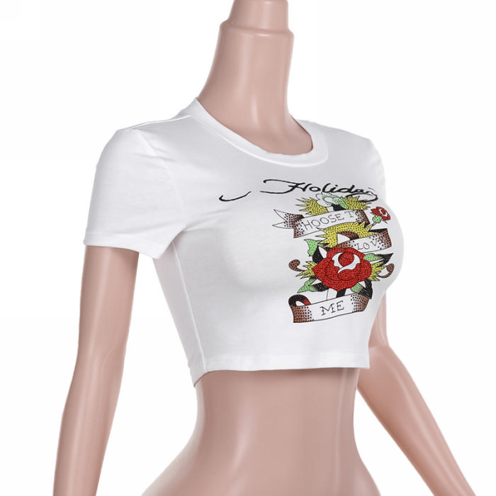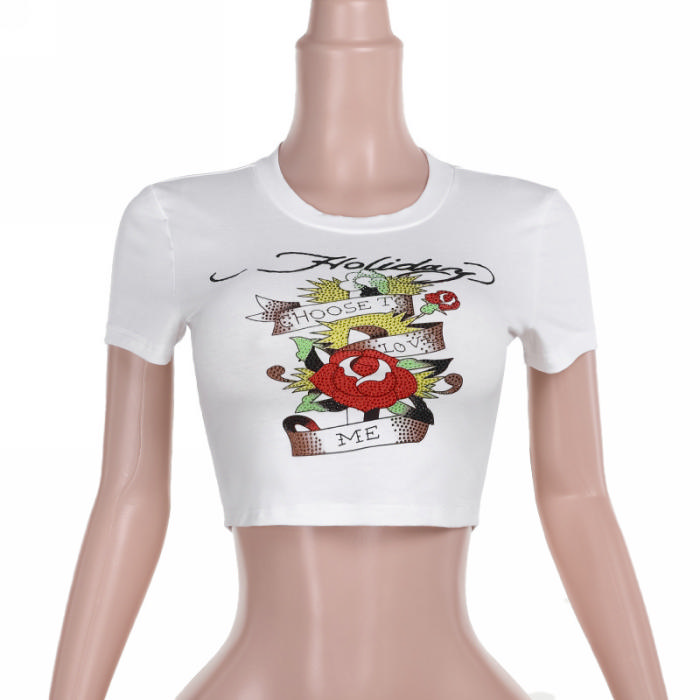(Real Image)2024 Styles Women Office-Friendly Simple Casual Versatile Rose Print Short Sleeve Tank TopsSKU: #XF92833-1