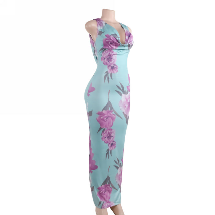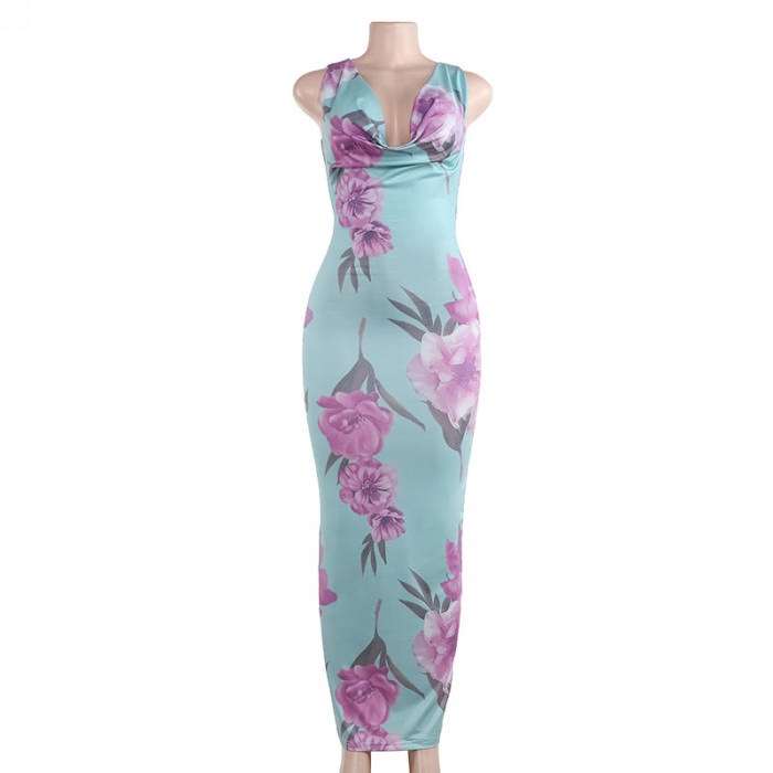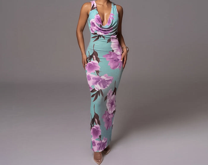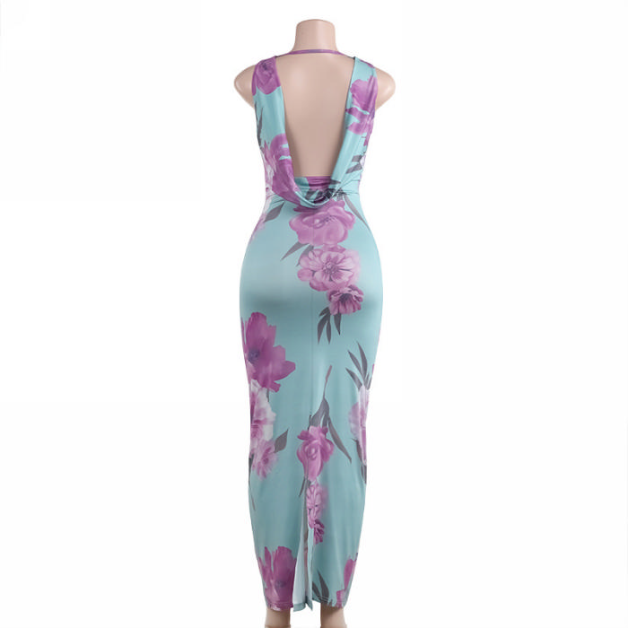 (Real Image)2024 Styles Women Open Back Fashion Elegant Print Scoop Neck Maxi DressSKU: #XF92848-1