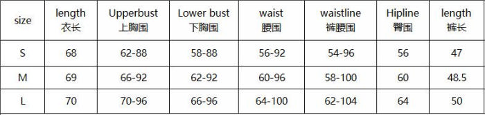 | Size | Bust | Waist | Hips |